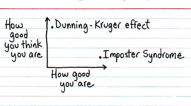 In short this is that relatively unskilled individuals suffer from think they know more than they do. In nice words this is “to mistakenly assessing their ability to be much higher than is accurate” as Wikipedia put it. If an unskilled person has to evaluate his own ability level accurately he tends to evaluate himself as more skilled as he should. Highly skilled individuals tend on the other side of the table to underestimate their competence assuming that easy for them indicates that it is easy for others at the same time.